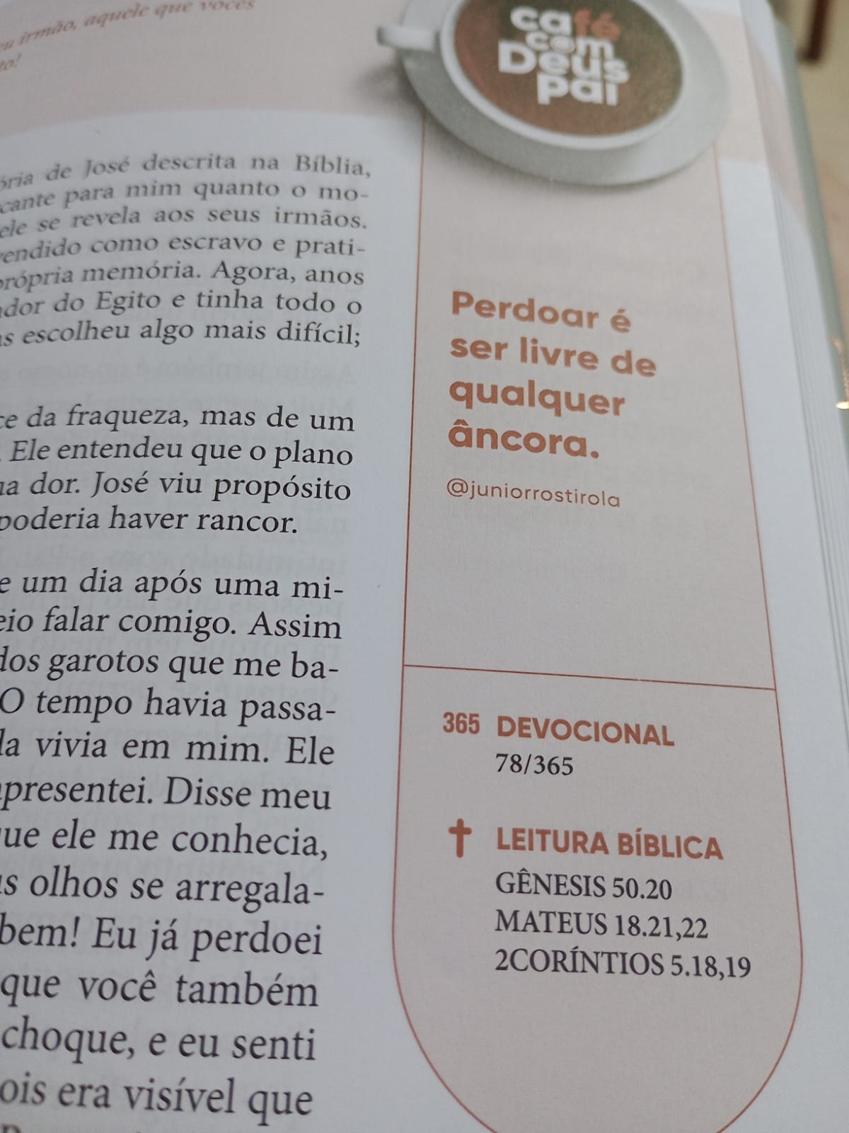 Hoje meu Café com Deus Pai - um grupo que criamos para os “feijões perdidos” que encontramos nos nosso caminhos nos trouxe essa mensagem: