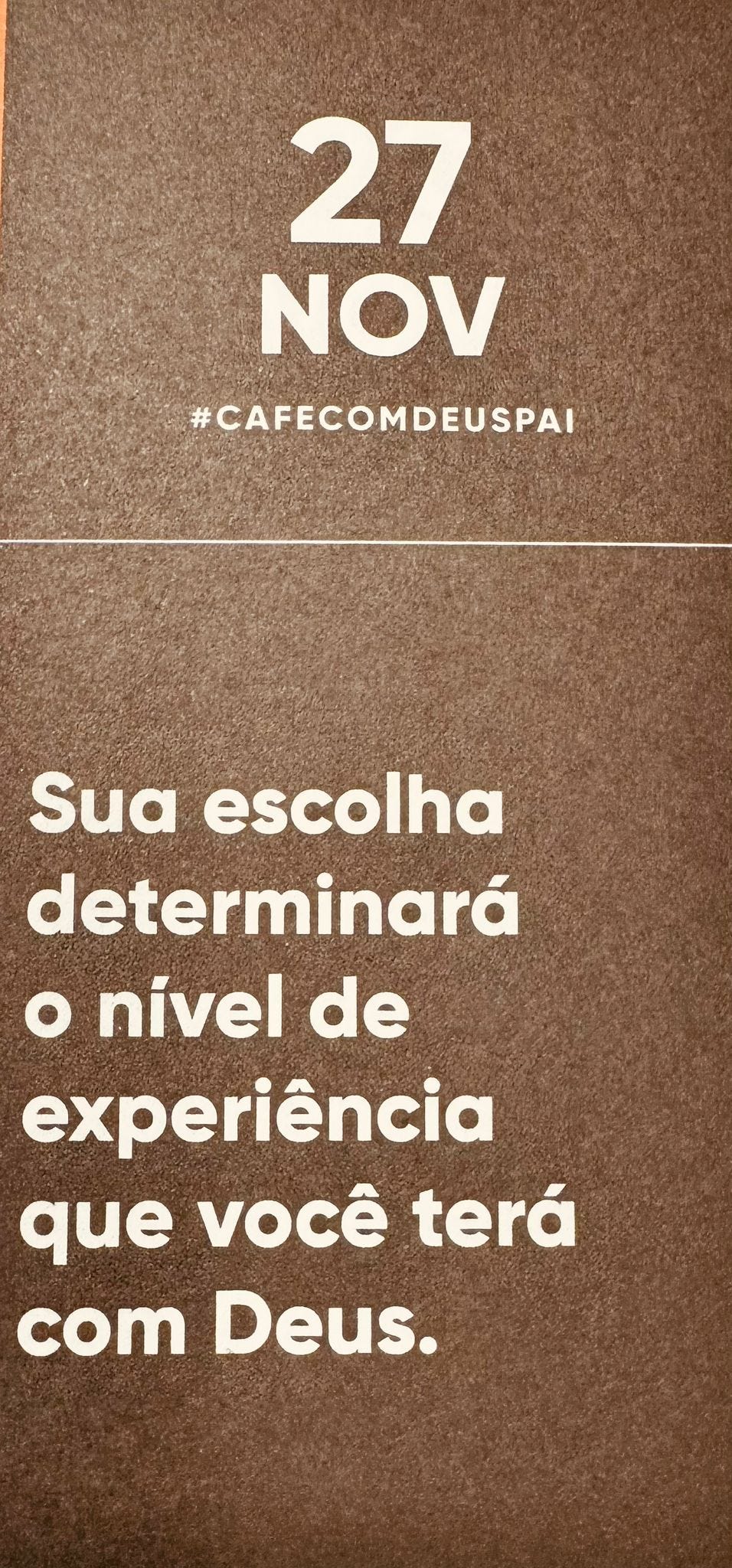 Nossas escolhas determina o nível de experiência que teremos com Deus